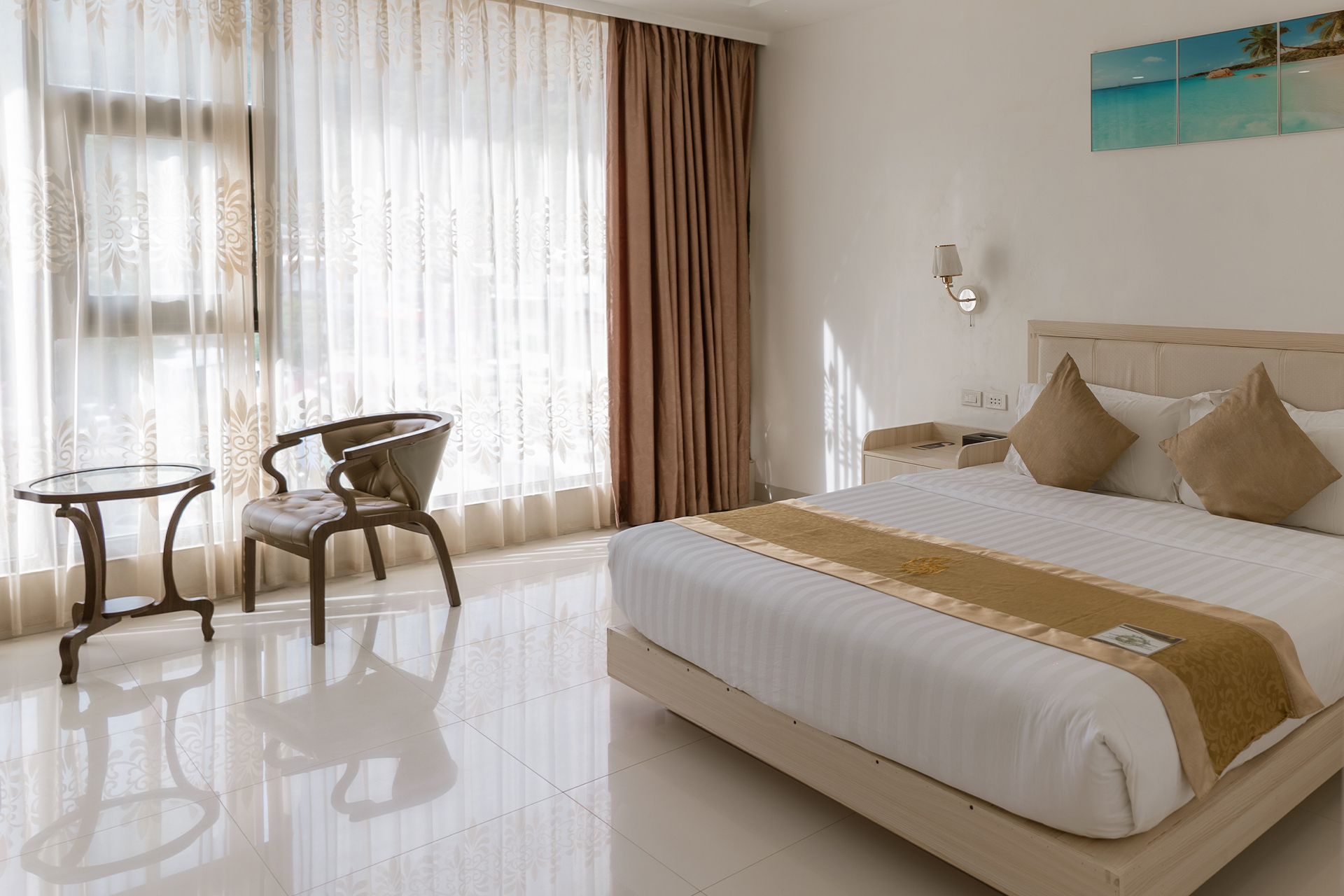 Experience luxury in our Premier Room, the top choice with breathtaking beach views. Though it features two beds, it offers unmatched comfort and elegance, making it a perfect choice for those seeking an exceptional stay..