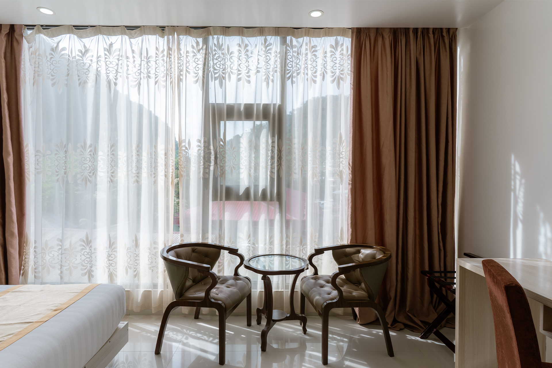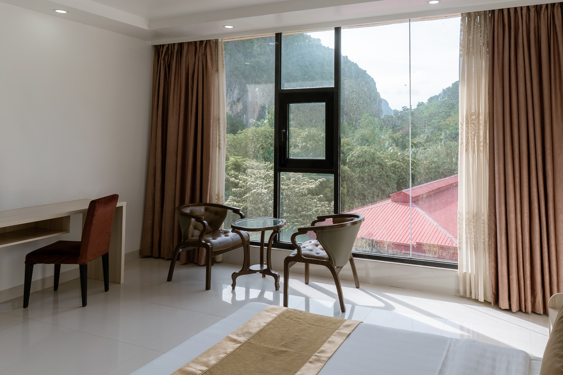 Our Deluxe Room offers twin or queen beds and stunning views of the mountains, town, or partial beach. Ideal for couples celebrating a special occasion, it combines a touch of glamour with budget-friendly comfort.